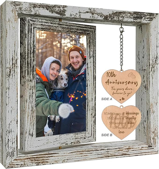 10 Year Anniversary Rotating Picture Frame for Wife, 10th Wedding Anniversary Photo Frame Gifts for Her Him Couples with 2 4x6 Display