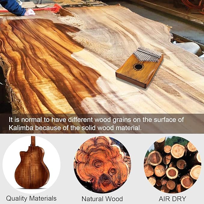 - Rigorous Raw Materials Selection: The Newlam 17 Keys Kalimba thumb piano is handcrafted with high-quality material and ore steel bars. Natural air-dried wood provides an ethereal timbre, which is a wonderful match with the natural wood grain.