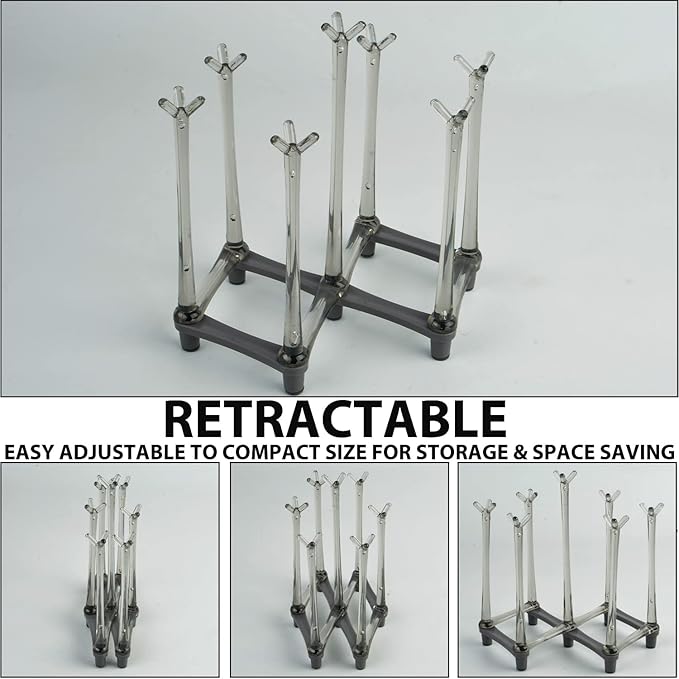 - Unique Retractable Design: The foldable cup drying rack can be easily adjusted to fit cups, mugs or bottles of different sizes, to meet different demands of using. When fully folded, the size is only about 19.5 x 17 x 5 cm (7.68 x 6.69 x 1.97 inch), very easy to store when not in use.