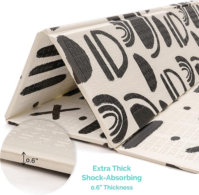 - Space To Play - This extra large baby play mat clocks in at 77 inches by 70 inches with a thick 0.6 in. padding, giving your little one plenty of space to crawl, play, or take a nap after they’re tuckered out