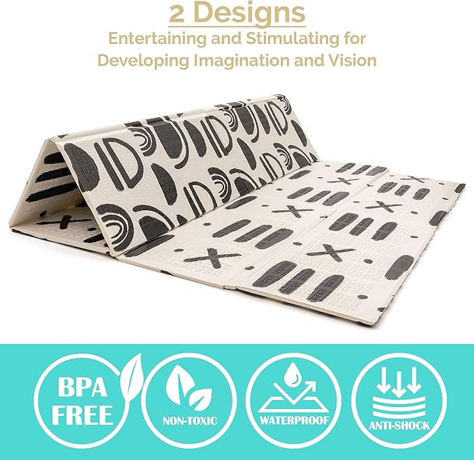 - Take It Anywhere - The accordion folding design makes for easy storage, so you can pack it up in the car and take this tummy time mat to the beach, park or anywhere that you like to relax with your baby