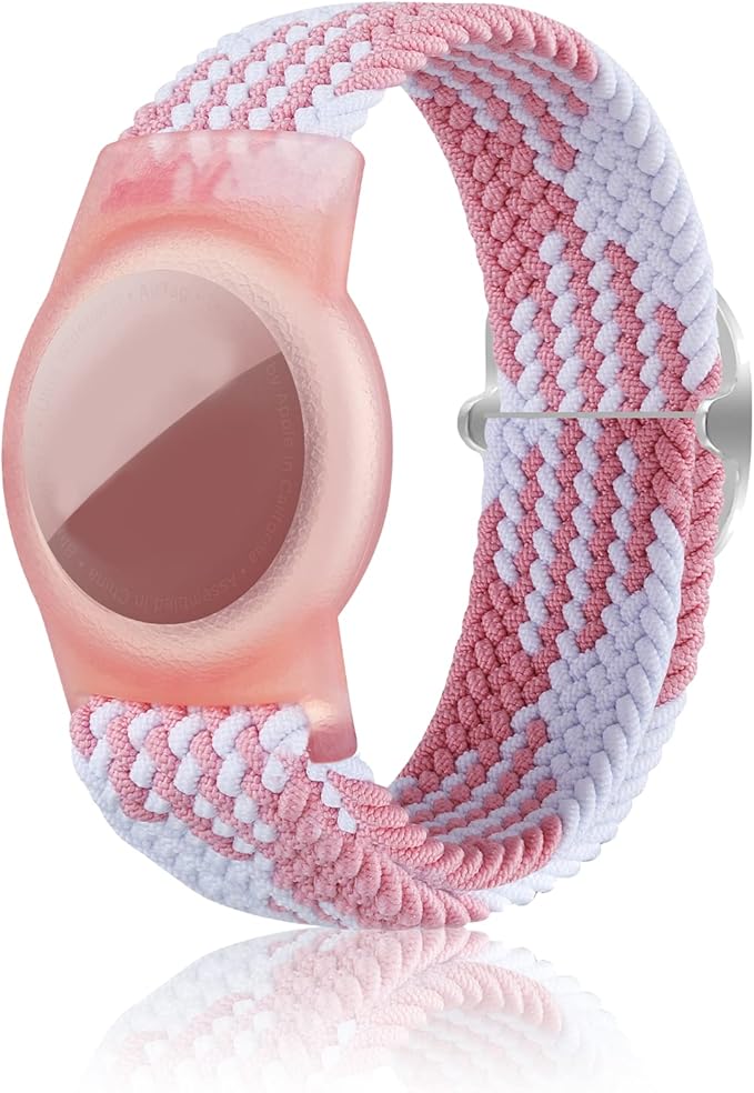 Kids Bracelet Compatible with AirTag, GPS Kid Tracker Holder Braided Wristband for Apple Air Tag, 2022 Upgraded Nylon Adjustable Anti Lost Airtag Watch Band for Kids Children Elders (White Pink)