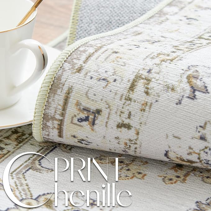 jinchan Hallway Runner Rug 3x8 Machine Washable Runner Rug Taupe Vintage Floral Design Non-Slip Low Pile Ultra-Thin for Kitchen Laundry Room Bedroom Farmhouse (3‘x8',Taupe)