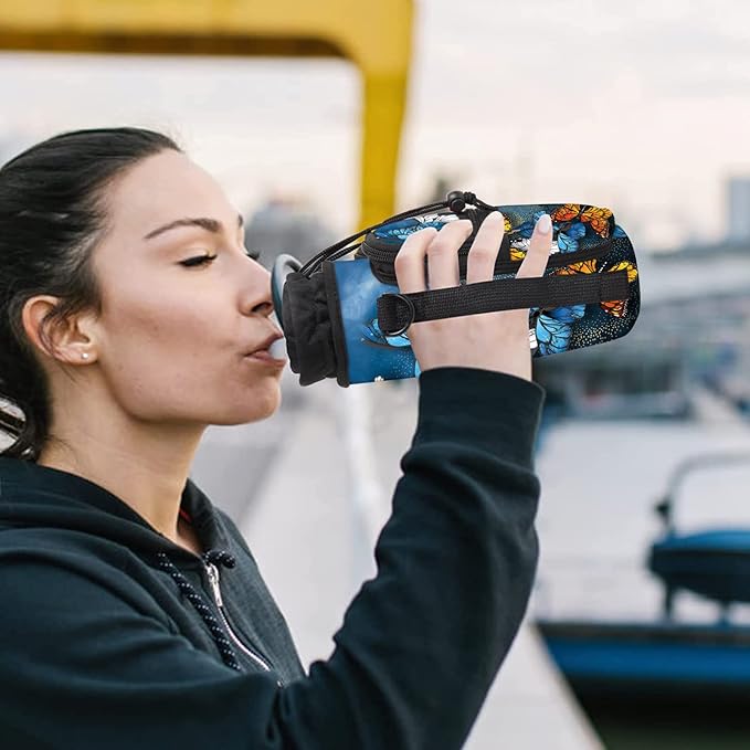 25/32/40/64oz Water Bottle Bag Holder Carrier-Insulated Crossbody Sling Case Sleeve with Strap & Pockets for Men Women Gym Cycling Travel Walking Hiking Camping