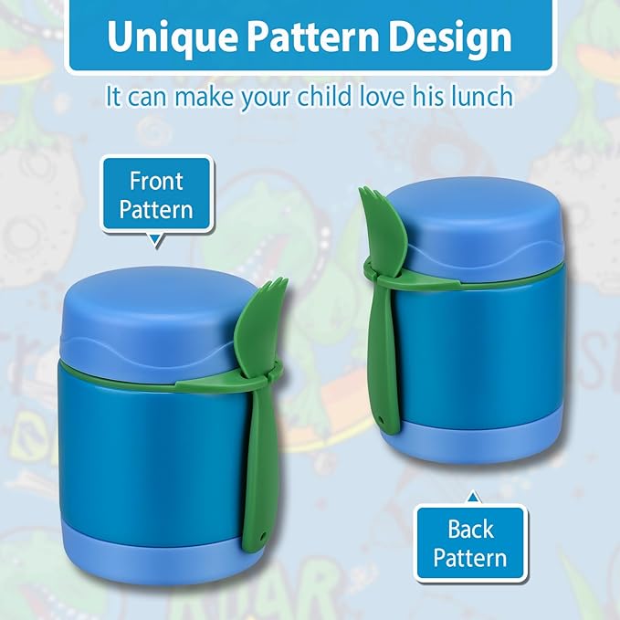 - Leak Proof Design: Feel confident that our leak-proof food jars will fit in your lunch bag without worrying about spilling messes. The insulated thermo food jar comes with a food-grade spoon for your child's convenience.