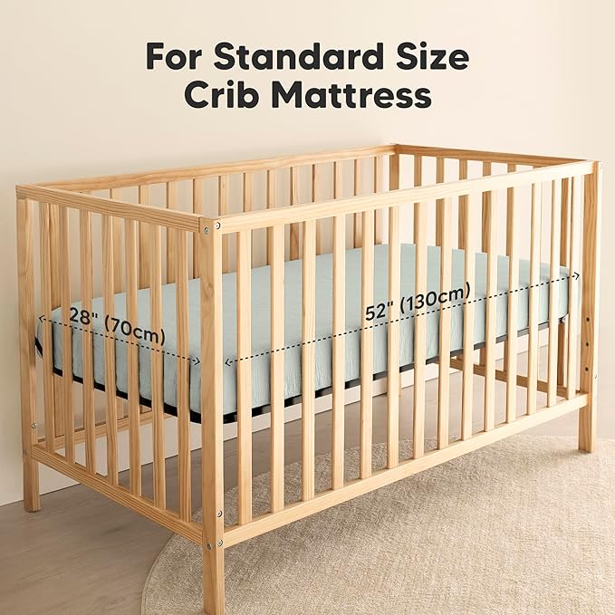 - 2-Pack Fitted Crib Sheets Neutral - KeaBabies Lyra Muslin Crib Sheets for baby girls & boys are perfectly sized standard crib mattress sheets at 52" x 28" x 3-8"(height). These soft crib sheets are made with 100% organic cotton (GOTS-certified).