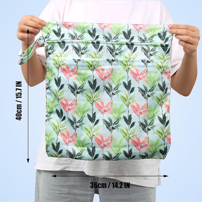 • WATER RESISTANT: The cloth diaper wet dry bags are lined with TPU waterproof coating that keeps odors and moisture. It can't hold clothes dripping but is perfect for damp clothes. Please wring out wet items before placing them in the bag, excess water may cause leaks through the seams.