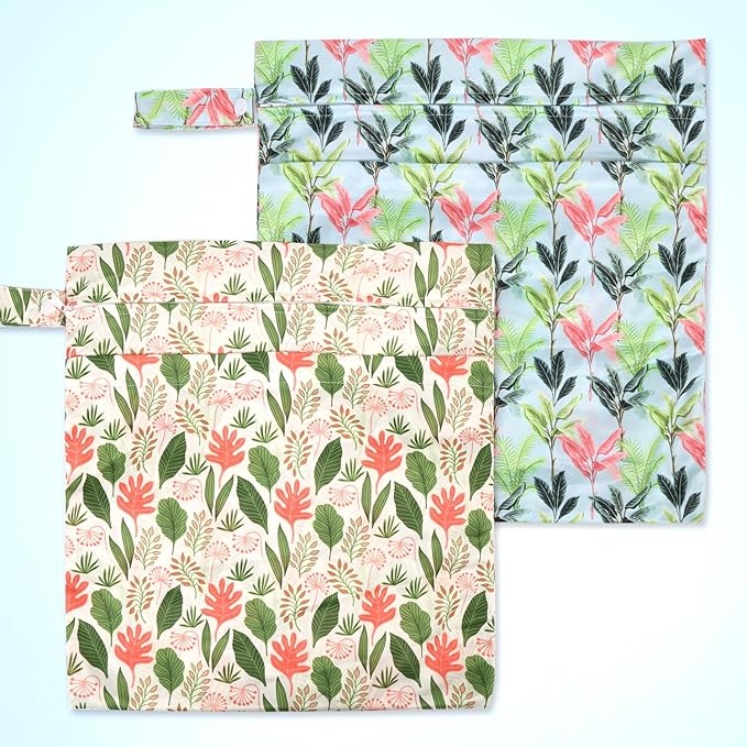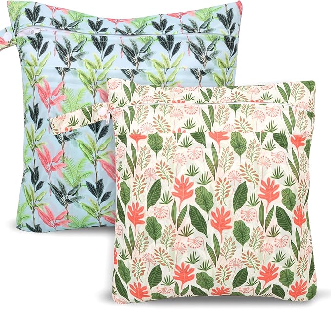 • 2 ZIPPERED POCKETS & HANDLE DESIGN: The 2 pack cloth diaper bags are designed with 2 Zippered compartments to keep wet and dry clothes separately, or separate dirty and clean diapers. There's a handle with a button on one side for hanging up, convenient to carry and attach to your stroller, doorknob, towel rack, hook or handbag.