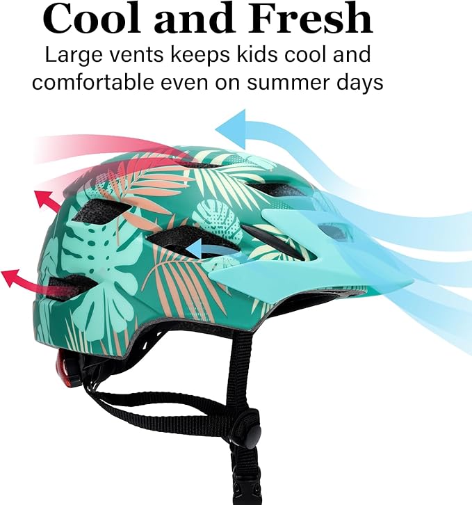 - Safety First, Always: The kids bike helmet is made of sturdy PC shell and thickened shock-absorbing EPS foam, providing maximum head protection for kids aged 2-14. Plus, The flashing rear LED light adds crucial visibility, ensuring your child stays safe and seen-even in low-light conditions
