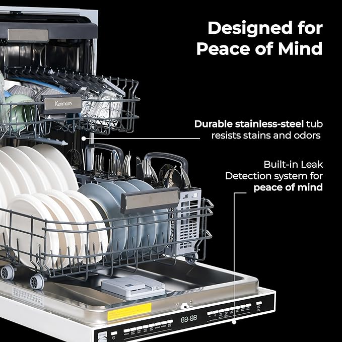 Kenmore 22-14625 24" Built-In Dishwasher - Quiet Tub with TurboDry, Leak, & SmartWash Soil Detection - 15 Place Settings - 49 DBA - ENERGY STAR Certified - Fingerprint Resistant Stainless Steel