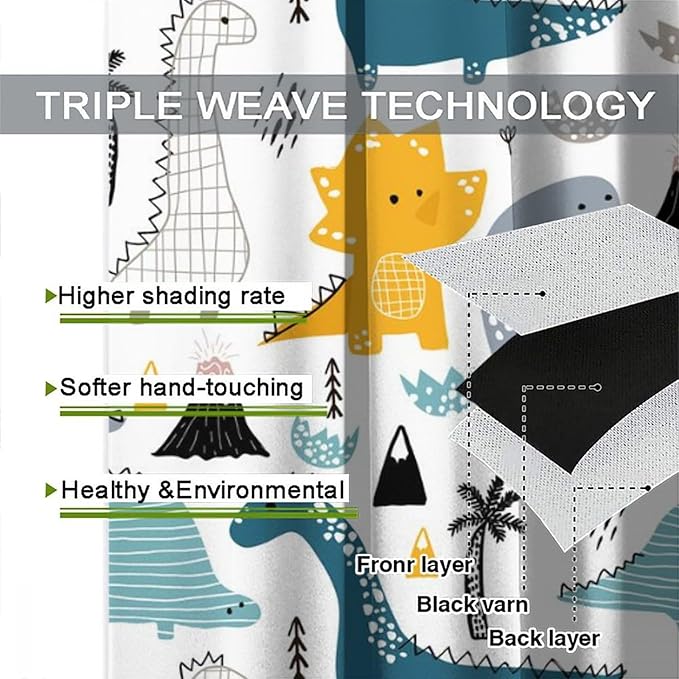 Kids Dinosaur Curtains for Boys Girls Bedroom Decor Cartoon Dino Colorful Cute Funny Wildlife Animal Printed Blackout Rod Pocket Window Drapes for Baby Nursery Playroom Living Room W21xL54in 2 Panels