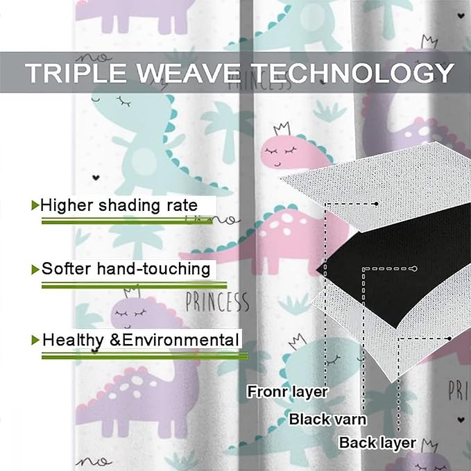 Kids Dinosaur Curtains for Boys Girls Bedroom Decor Cartoon Dino Colorful Cute Funny Animal Wildlife Printed Blackout Rod Pocket Window Drapes for Baby Nursery Playroom W36xL63in 2 Panels