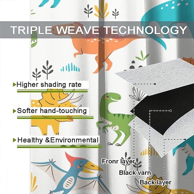 Kids Dinosaur Curtains for Boy Girl Bedroom Decor Cartoon Dino Colorful Cute Funny Animal Wildlife Printed Blackout Rod Pocket Window Drapes for Baby Nursery Playroom Living Room W36xL63in 2 Panels