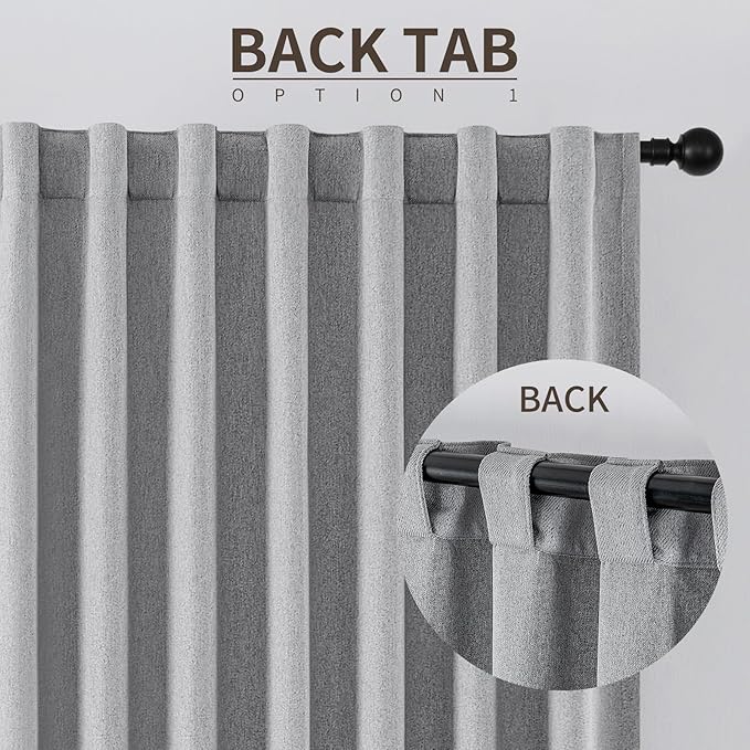 - 【Back Tab & Rod Pocket Design】Blackout curtains are popular among consumers with convenient back tab&rod pocket design. The Joydeco blackout curtain is available in both rod pocket and back tab, you can choose the convenient way to decorate your windows.