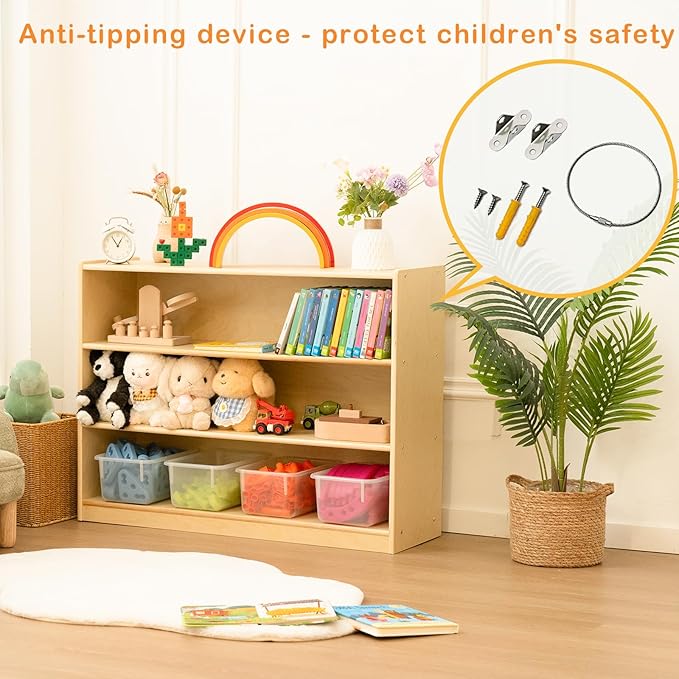 Kids Bookshelf and Toy Storage Shelf, Wooden Montessori Bookshelf, 3-Tier Toy Shelf, 30in Birch Children Bookcase, Classroom Furniture, Book Shelf for Kids Room, Nursery, Playroom