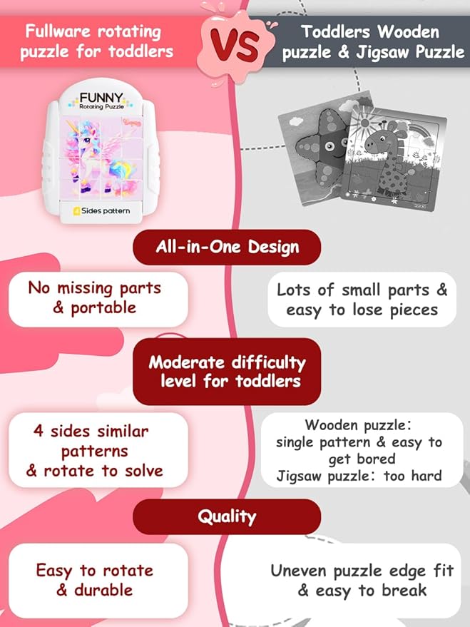 - A HANDY TOY FOR OUTINGS - Whether in the car or at a restaurant, our compact Rotating Puzzles can be carried along and keep children quiet and occupied. Moreover, there is no risk of missing pieces after playing with this all-in-one design puzzle!