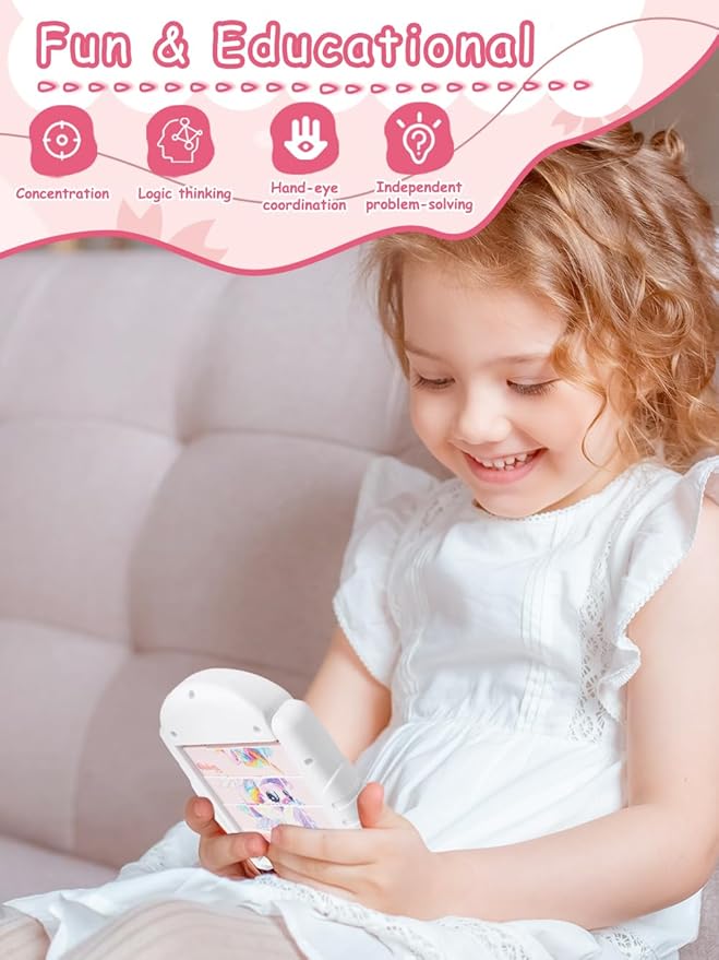 16-Piece Rotating Puzzles for Kids 4-6, Toddlers Puzzles 2-4, Road Trip, Airplane Activities Game, Travel Toys - Brain Teaser, Fine Motor Skills - Birthday Gifts Boys & Girls - Pink Alicorn