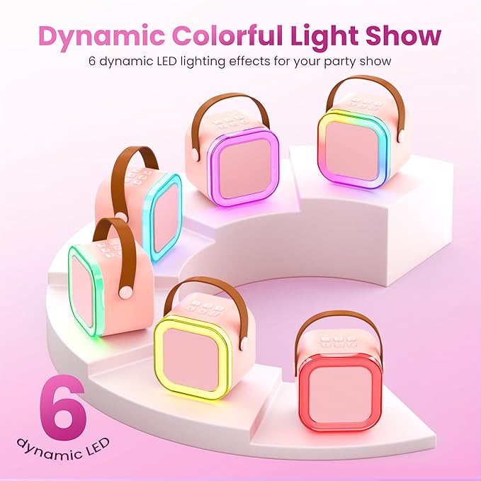 Karaoke Machine for Kids Adults, Portable Bluetooth Mini Karaoke Microphone Singing Speaker with 2 Mic and Light,Toys for All Smartphones,Birthday, Family,Home Party (Pink)