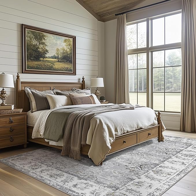 jinchan Washable Area Rug 8x10 for Living Room Soft Faux Wool Ultra-Thin Stain Resistant Non-Slip Distressed Vintage Floral Large Carpet for Bedroom,Dining Room,Home Office,Nursery(Grey, 8'x10')