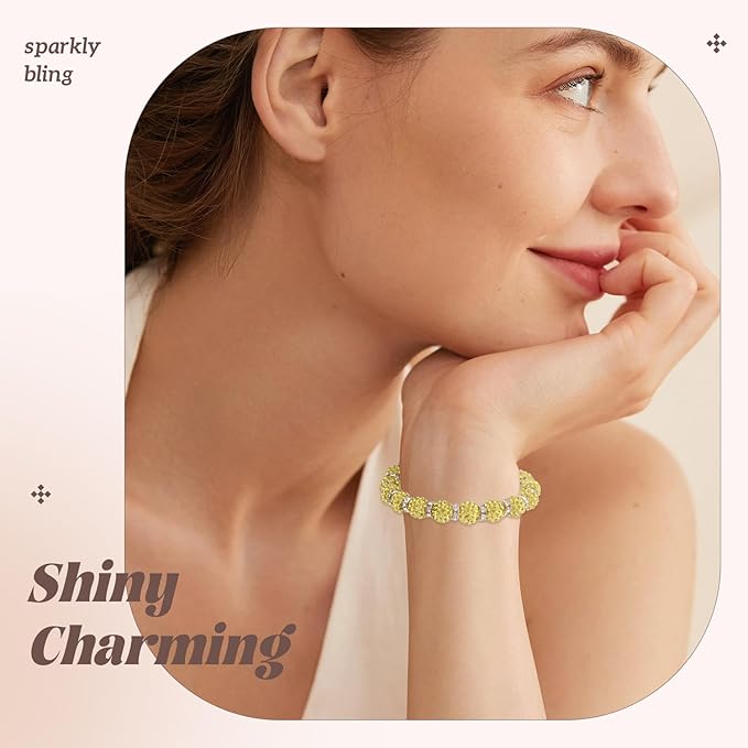 105pcs 10mm Rhinestone Beads for Jewelry Making, Light Yellow Shiny Round Disco Beads Bulk, Sparkle Crystal Clay Christmas for Bracelet Baseball Necklace Earring Crafting and DIY