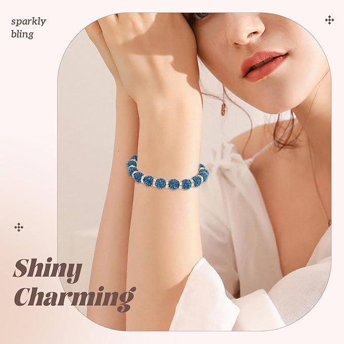 105pcs 10mm Rhinestone Beads for Jewelry Making, Blue Zircon Shiny Round Disco Ball Beads Bulk, Sparkle Crystal Clay Christmas for Bracelet Baseball Necklace Earring Crafting and DIY