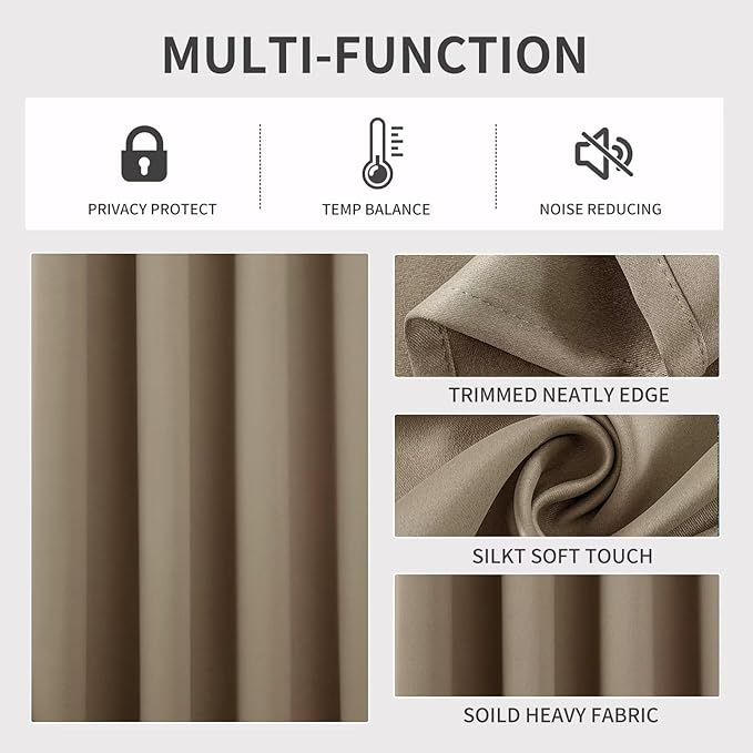 - 【Easy install and maintain】The Grommet design allows you to install the curtain quickly, saving your installation time. The fabric is machine-washable, allowing you to simply toss it into the washer with cold water and a gentle cycle. Avoid using bleach to preserve the color and texture. Once washed, tumble dry on low heat or air-dry for best results.