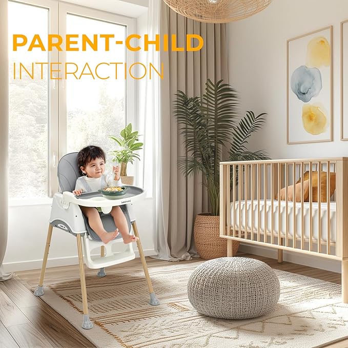 - Multiple Safety Protections: Sturdy steel tubes and a golden triangle design prevent tipping. The adjustable 5 point harness high chair ensures your baby’s safety, making this highchair a top choice for parents.
