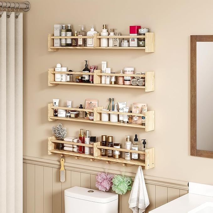 - 【Multi-purpose Wall Shelves】:Unleash your creativity with this wall shelf set. You can place it in your child’s bedroom as a space-saving bookshelf or use it as a spice rack in the kitchen. You can also put it in the bathroom to store your bathroom accessories and other toiletry essentials.