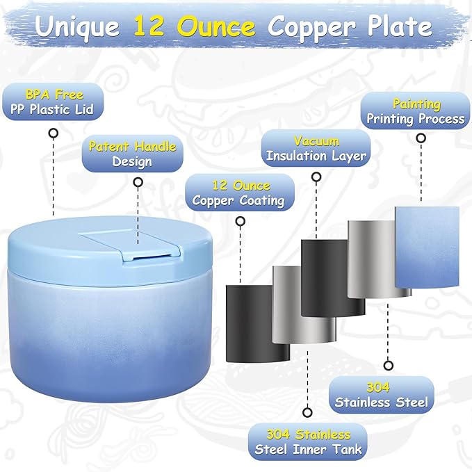 - Upgrade to 12 OZ Capacity: Bigger capacity can hold more food for children. The stainless steel soup thermal bottle is a double wall, with a vacuum in the middle, has good insulation performance, with a wide mouth design that is easier to clean.