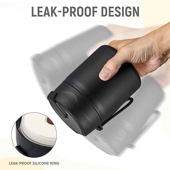 - 17oz Leak-proof thermo for hot food: Our insulated food jar has a 17oz capacity for holding as much food as you want, the insulated food canister is designed with a safety sealing lid to prevent liquids from leaking.