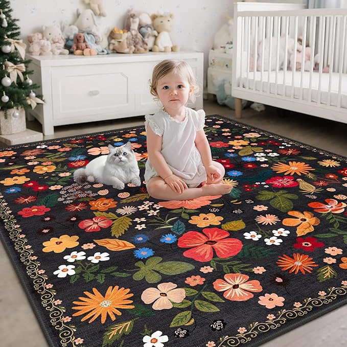 - Timeless Design for Any Space: Featuring Boho floral patterns and warm, rich colors, this area rug brings both elegance and coziness to your home. Its 0.3” pile height makes it perfect for high-traffic areas and underneath furniture, whether you’re creating a cozy living room or a stylish dining area.