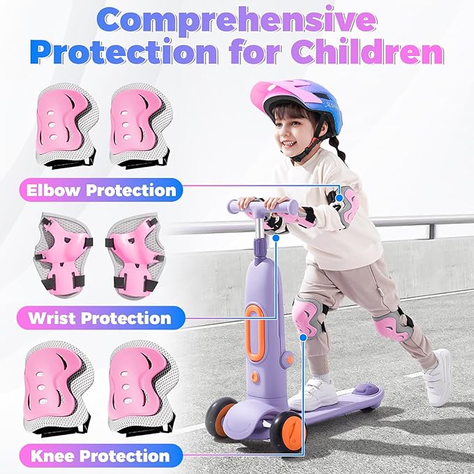 - PERFECT GIFT CHOICE: The design of our helmet set takes into account the needs of boys and girls, with various colors and fashionable styles. Whether it is an adventurous boy or an energetic girl, you can find the one you like. It can be used as a birthday gift, Children's Day gift, Christmas gift and other holiday gifts for children!
