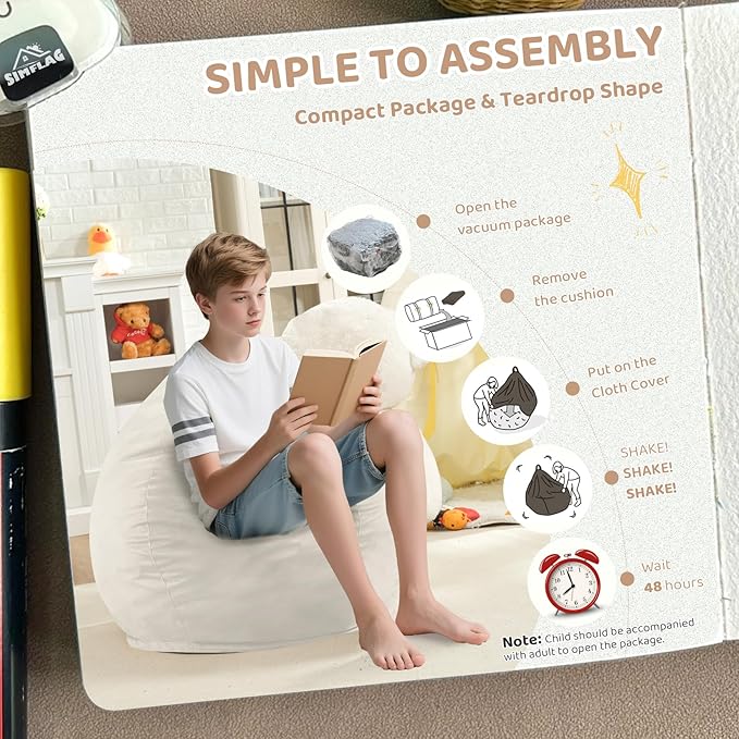 - WIDELY USE FURNITURE: Bean bag chairs is ideal for watching movies, studying, reading, gaming, napping, or just chilling, and is the perfect addition to every space, playroom, kid's room, living room, office, or school dorm.
