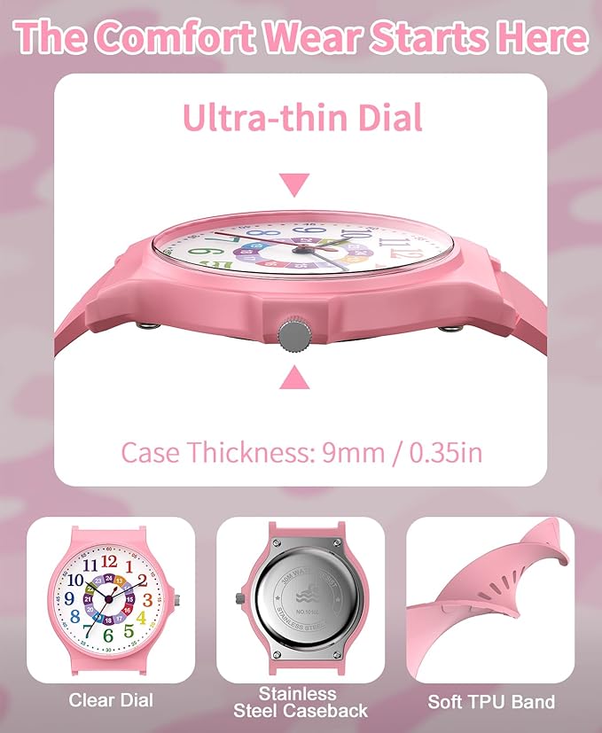 - 【3ATM Waterproof Analog Kids Watch】 Life waterproof, can wash hands, splash, rain, etc., but can not be used in high temperature, and can not pull out the knob in the water.