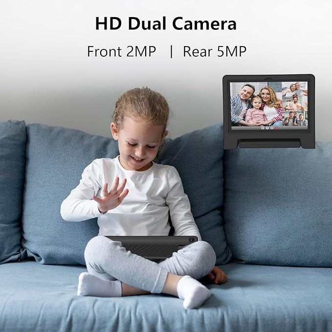 - 10.1 Inch HD Large Display: The 10.1-inch kids tablet features a 1280 x 800 HD touchscreen, offering bright, clear visuals for educational content and games. With an eye-care mode, this kids tablet provides a smooth viewing experience while protecting your child's eyes. 2MP front camera & 5MP back camera for taking photos and video calls.