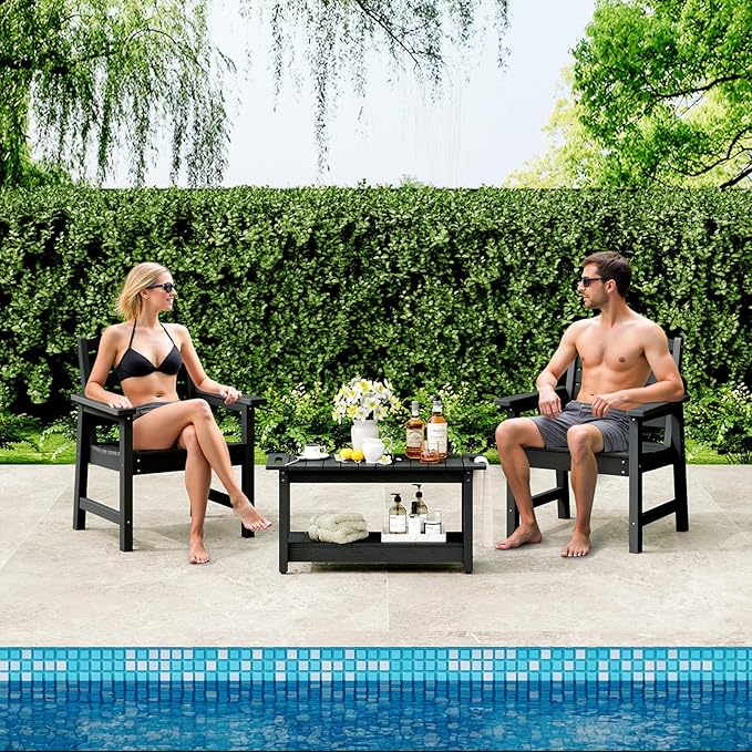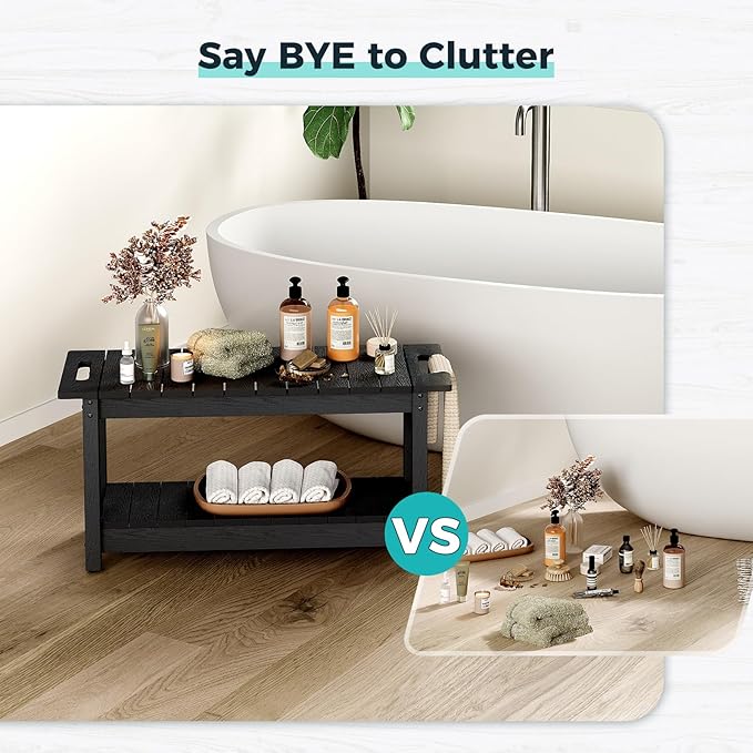 35" Shower Bench, Waterproof Poly Lumber Shower Stool for Shaving Legs, Shower Chair Seat Holds up to 400lbs, Bathroom Bench for Inside Shower, Non-Slip (Black)