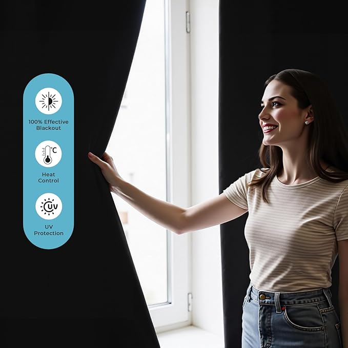 - 【100% Blackout】: Our portable blackout curtains are made of high-quality lightweight fabrics which can block 100% of sunlight and UV rays , blocks sunlight in sum/mer and reduces heat loss in winter, The energy effcient window blackout cover minimize heating and cooling costs, while prevent your furniture from sun exposure. It fits perfectly with the window without gaps around it, providing you with a dark sleeping environment and complete privacy.