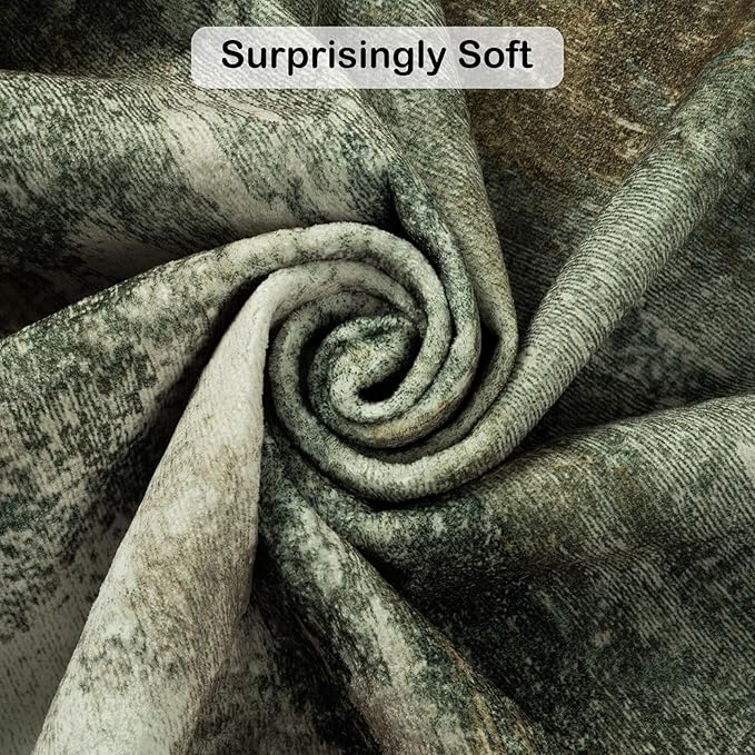 Kelarea Living Room Rug, 9x12 Rug Modern Abstract Washable Rugs, Green Vintage Low Pile Carpet, Non Slip Large Rugs for Bedroom, Dining Room, College Dorm, Home Office