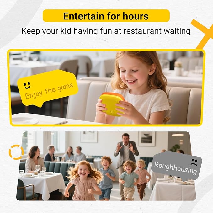- Smart & Portable Design – Pocket-sized for car rides, road trips, or plane flights, having fun when you’re on the go! Silent mode (hold Mode Switch) keeps play discreet—no more noisy distractions, relax and immerse yourself in your game world