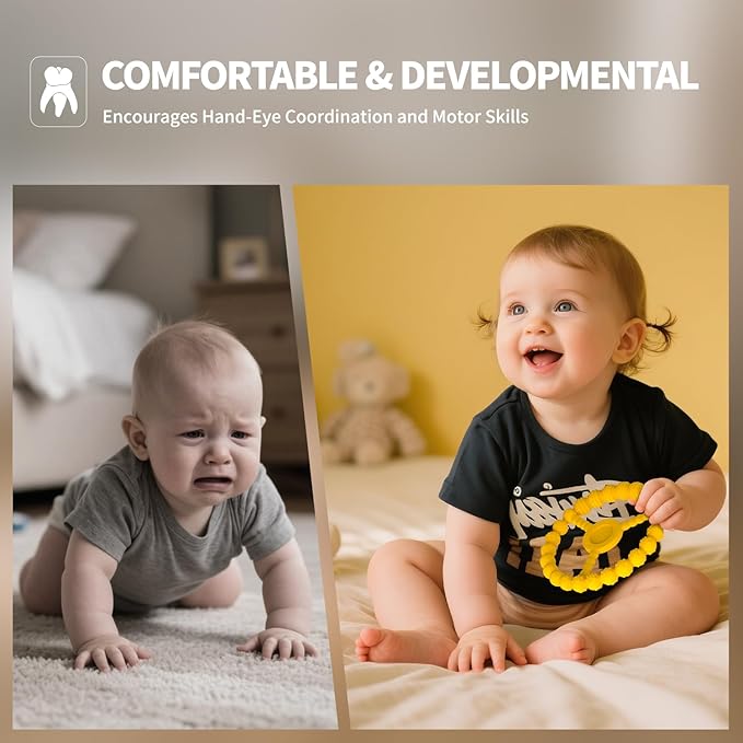 - Multi-Texture & Tactile Development: Multi-texture baby teething toys features varied bead sizes and bumpy surfaces to stimulate tactile development. Lightweight silicone rings are freezable for extra teething relief from sore gums for babies.