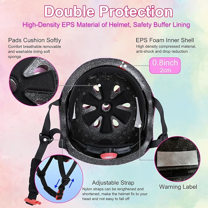 - 【Perfect Gift Choice for Kids】 Our boys girls helmet is lightweight (only 12.3oz), and kids have no burden wearing our bike helmet. The toddler bike helmet provides protection for many outdoor activities, such as bicycling, roller skating, skateboarding, scooter, street dancing, pedaling, etc. It is a good choice as a gift for Children's Day, Christmas, Halloween, Thanksgiving, Birthday and other holidays.