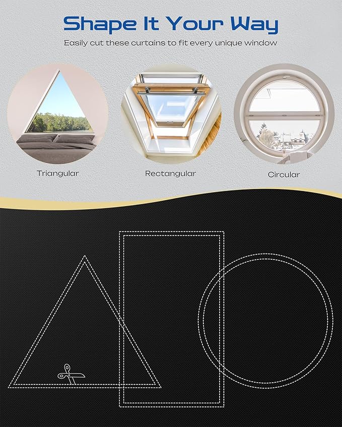 - Multiple Sizes Available - Offering a range of width and height specifications to precisely fit various window types, from small bathroom windows to standard bedroom windows and large living room floor-to-ceiling windows. It is recommended to choose a width 2–5 inches wider than the window and a length with a 1–2 inch drape. Combined with the hook-and-loop tapes to seal the edges, it achieves 100% light-proof shading
