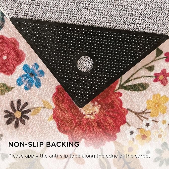 - NON-SLIP: Our rug features a textured TPR backing that stays firmly in place, and comes with non-slip pads - just follow the simple instructions to secure it. This colorful rug works perfectly in living rooms, bedrooms, dining areas, entryways, kids' playrooms, home offices, and kitchens.