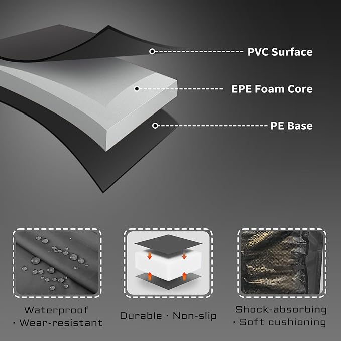 - 【PREMIUM MATERIAL】The outer layer shell is manufactured with high density PVC on top and heavy-duty PE on the bottom, 0.6 inch high-density EPE foam inside
